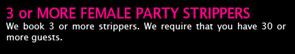 PARTY CONDUCT DISCLAIMER: All customers who book with us are to maintain a safe environment at all times for our dancers. At any time that the dancers feel harrased or threatened. They have the right to leave without any money for fees returned.
